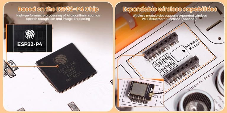 200W camera + dual speakers: Supports interactive projects such as image recognition and voice interaction.